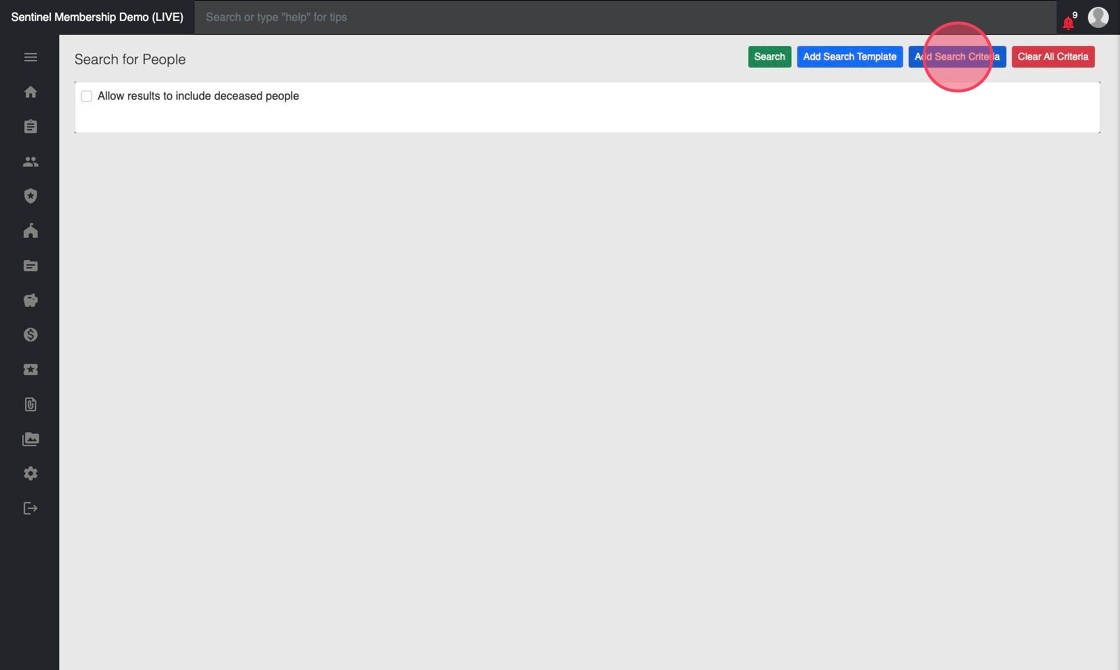 2. To add our criteria, click the blue "Add Search Criteria" button.
