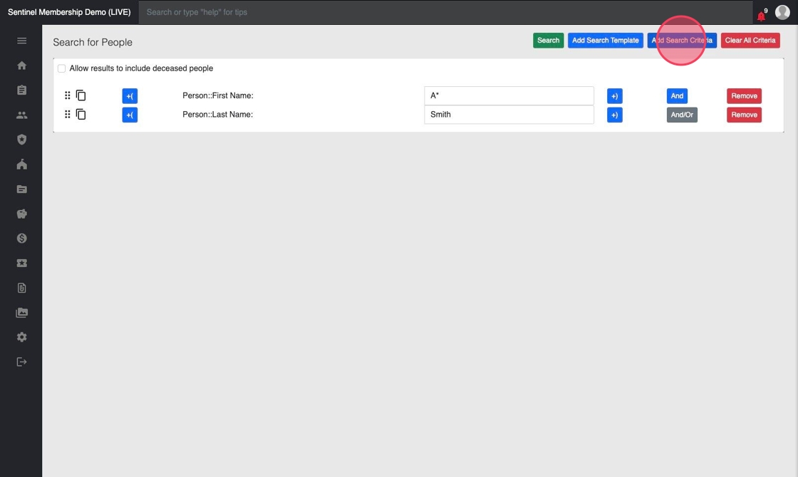 8. To add another search criteria, click the blue "Add Search Criteria" button again.