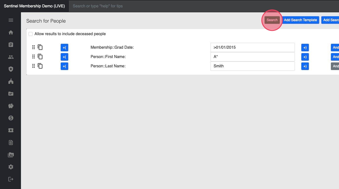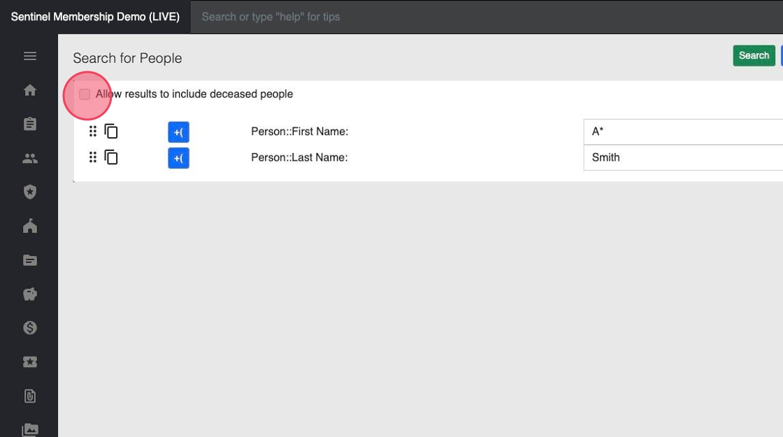 7. By default, your search will not include deceased people. If you wish to include deceased people in your search, you must check this box.