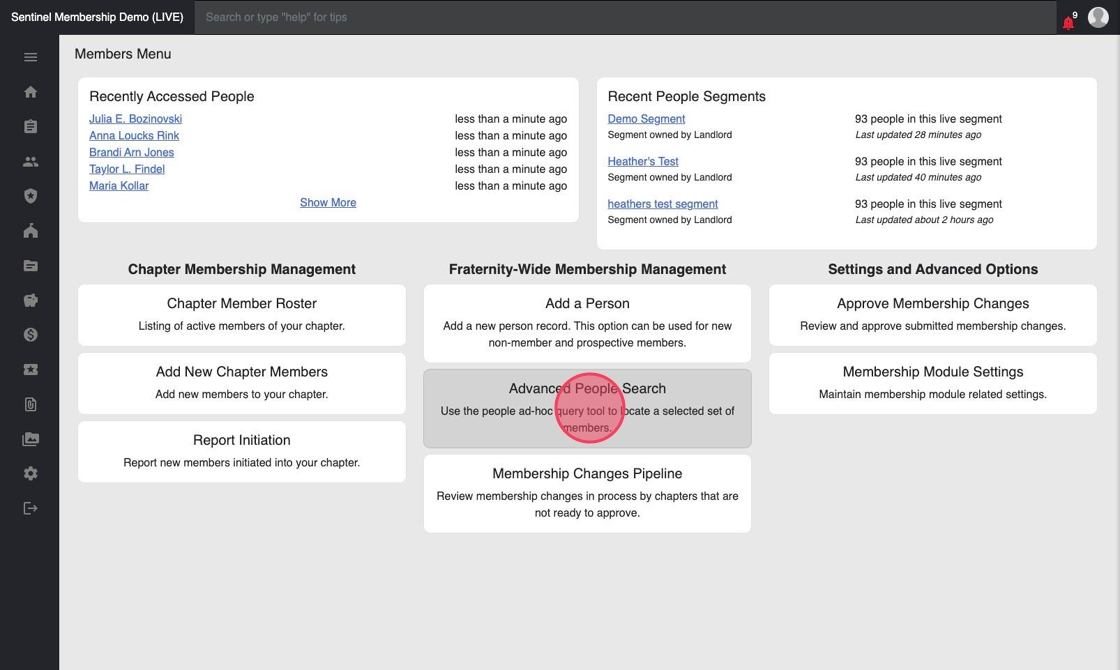 1. Click the "Advanced People Search" button from the Members Menu page.