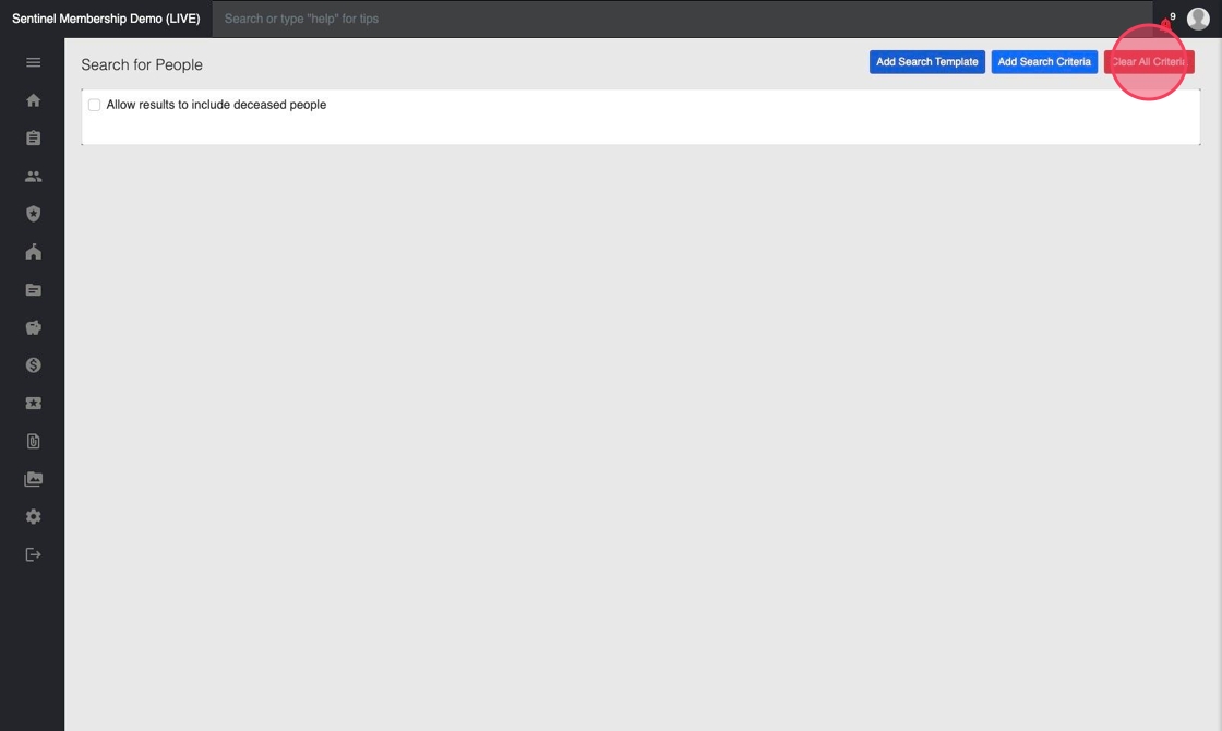 15. Click the red "Clear All Criteria" button to reset the search screen.