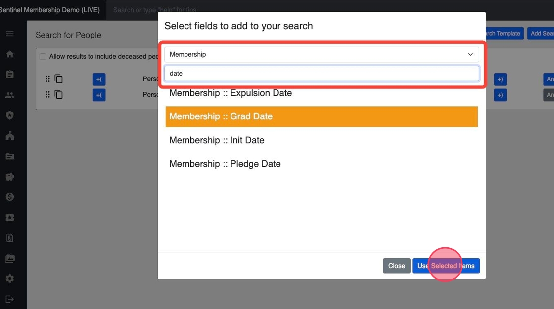 Select "Graduation Date" and use the blue "Use Selected Items" button.